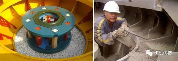 PCL沒有散料錐裝置,工作原理是采用“石打石”原理完成機制砂功能的,VSI配有散料錐(盤)裝置,可以根據(jù)用戶石料整形或制砂的需要,通過調(diào)節(jié)進入葉輪和渦流腔中的物料的比例,簡單就能實現(xiàn)石料整形和制砂的功效,達(dá)到一機多用的功效。
