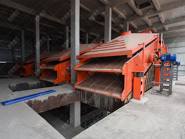 整型破碎整形機(jī)械,中等粒度石頭送入破沙機(jī)進(jìn)行整型破碎后,由圓振動(dòng)篩進(jìn)行篩選分級,較大粒級石頭返送至破沙機(jī)又一次破碎,合格機(jī)械由帶式輸送機(jī)送至儲(chǔ)料堆貯存,細(xì)石頭送入砂石洗選機(jī)械清洗。